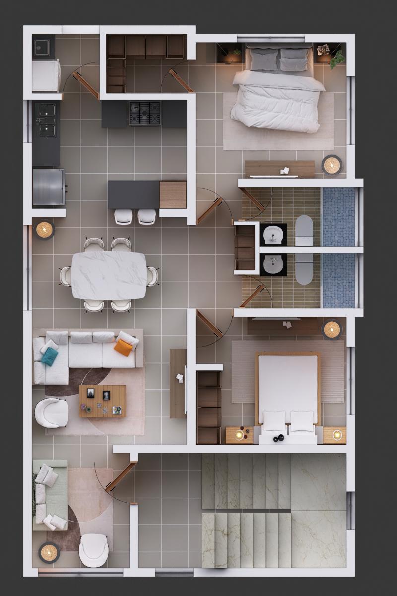 Proyecto residencial exclusivo para 3 familias ubicado en el sector de Los Álamos, Santiago de los Caballeros. Este residencial va a contar con un edificio de 3 niveles siendo un apartamento por nivel con las siguientes características: